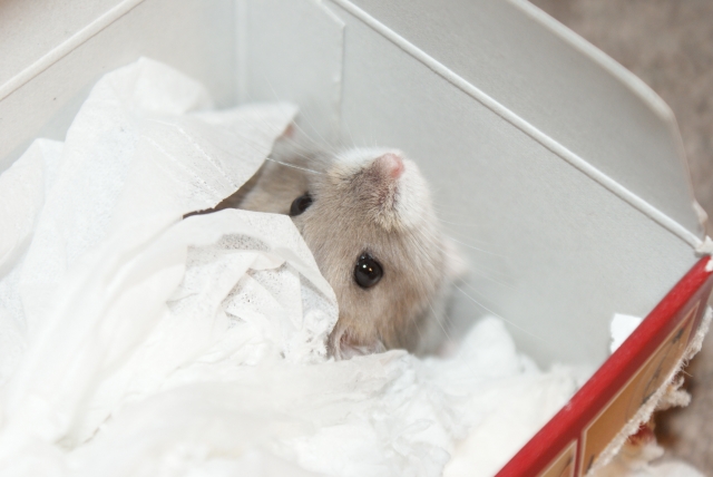 お迎え直後は、ハムスターが巣からなかなか出てこなかったり、すぐ隠れてしまうことがあります。