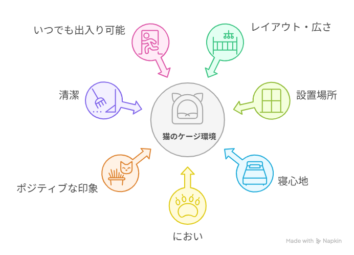 ここでは、猫が「ここにいたい」と感じられるようなケージづくりのコツを7つ紹介します。