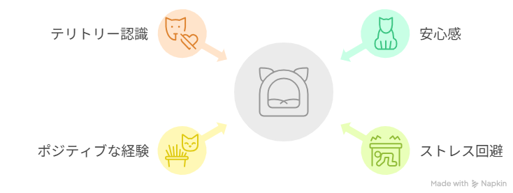 ふかふかの寝床、静かな設置場所、自由に出入りできる構造、そして中で過ごすポジティブな経験。
